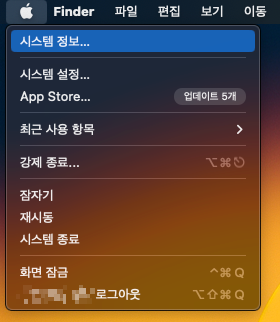 좌측 상단의 Apple 메뉴를 열고 옵션 키를 누른 상태에서 보면 '이 Mac에 관하여' 항목이 '시스템 정보...' 항목으로 변경된다.