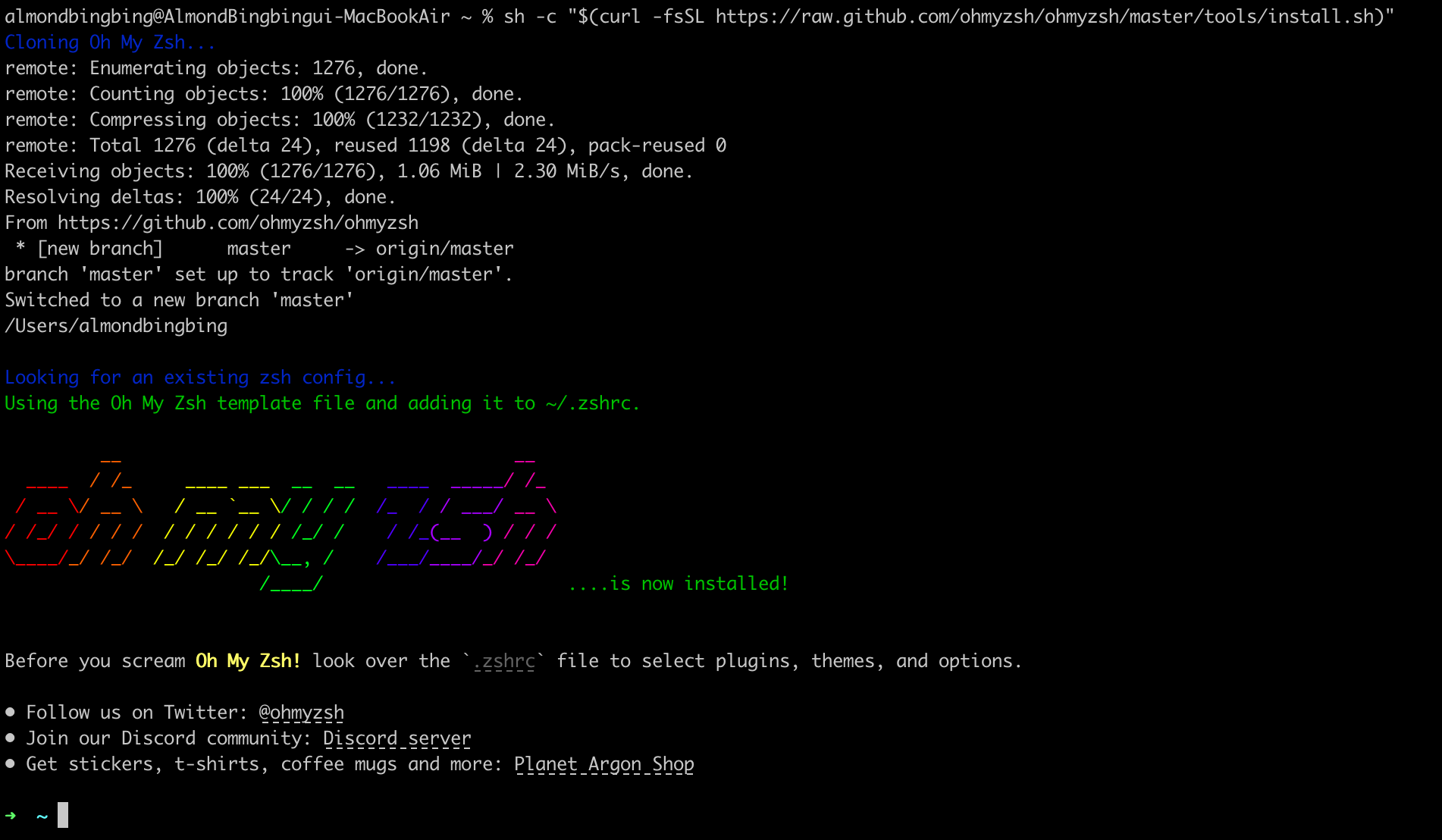 ~ sh -c "$(wget https://raw.github.com/robbyrussell/oh-my-zsh/master/tools/install.sh -O -)"