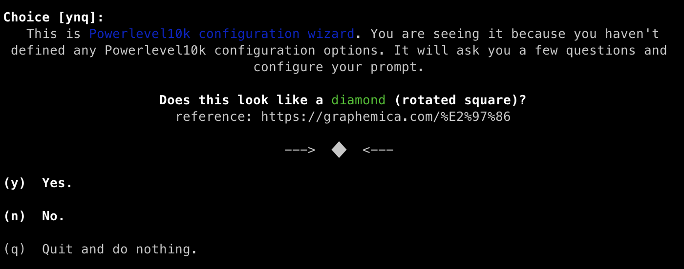 다시 위의 p10k configure 명령을 실행하면 설정 마법사가 실행된다.